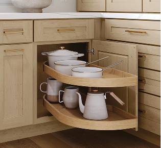 Give your base cabinet run a consistent look with a corner solution that features a top drawer.
