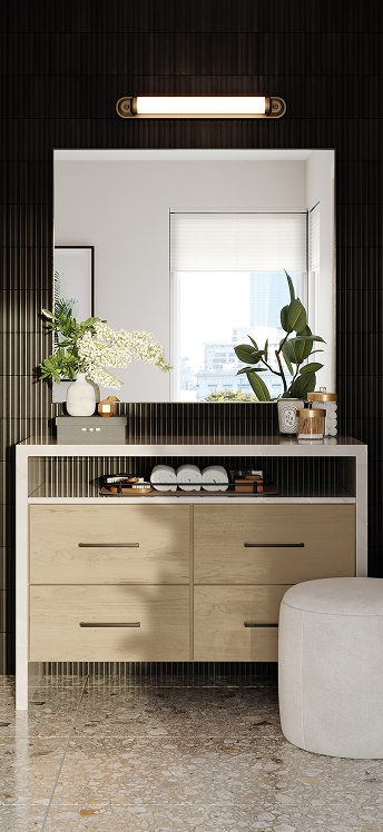 Our expanded wall hung vanity designs deliver the style, storage, and size dimensions you need to create a primary bath space.