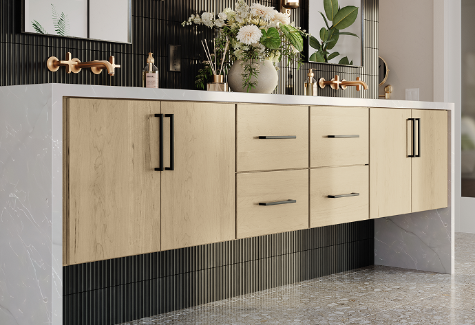 Our new two-drawer sink solutions update the drawer design to provide more bathroom storage space.