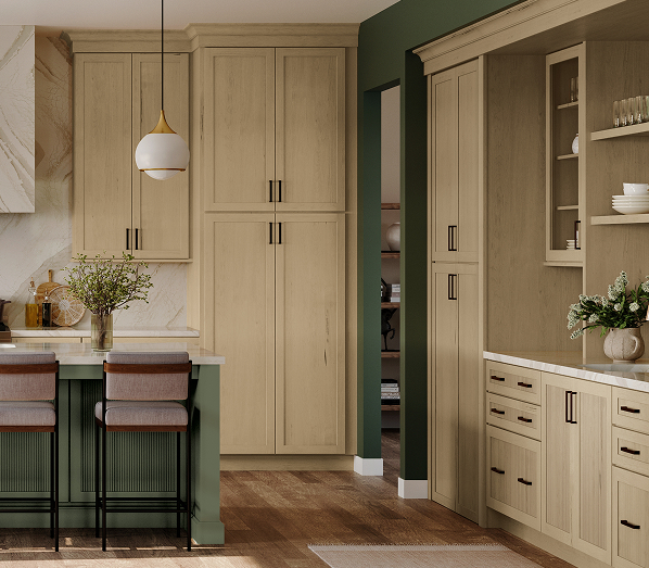 CABINETS: Putnam | Maple | Daybreak WALL HOOD: Maple | Hearthstone ISLAND: Maple | Daybreak