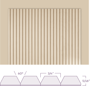 Flat Reeding features more narrowly spaced lines with shallower grooves that create a subtle, delicate look. This reeding matches the center panel of the Reeded Door for a coordinated look.